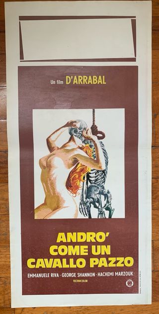 Locandina Poster originale del film Andro’ come un cavallo pazzo. Mai affissa. Leggermente stropicciata sui bordi. Cm. 70x33 - Un film di D'Arrabal. - Con Emmanuelle Riva, George Shannon, Hachemi Marzouk.
