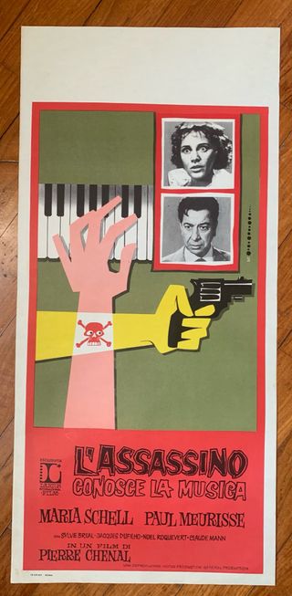 Locandina originale del film L'assassino Conosce La Musica. Mai affissa. Cm. 70x33 circa. - Titolo: L'assassino Conosce La Musica - Regia: Pierre Chenal - Attori principali: Maria Schell, Paul Meurisse - Altri attori: Sylvie Breal, Jacques Dufilho, Noel Roquevert, Claude Mann