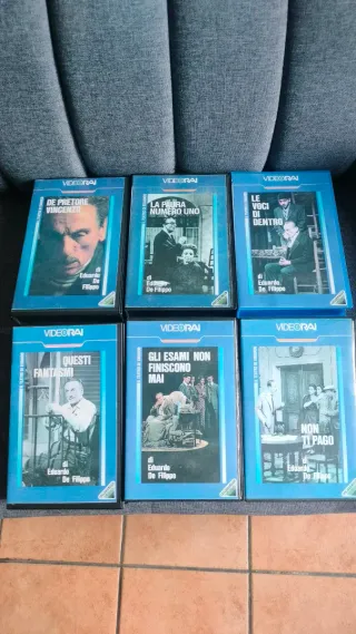Lotto di 9 VHS del Teatro di Eduardo De Filippo. - De Pretore Vincenzo - La paura numero uno - Le voci di dentro - Questi fantasmi - Gli esami non finiscono mai - Non ti pago In blocco Non originali