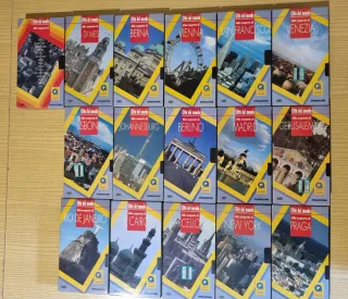 Collezione di 31 videocassette VHS Città del Mondo della DeAgostini. - Ogni cassetta esplora una città diversa. - Titoli visibili: Città del Messico, Berna, Vienna, San Francisco, Venezia, Lisbona, Johannesburg, Berlino, Madrid, Gerusalemme, Rio de Janeiro, Il Cairo, Barcellona, New York, Praga.