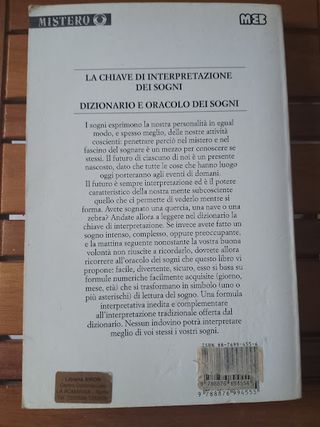 La chiave d'interpretazione dei sogni. Dizionario e oracolo dei sogni. di Burton Lewis. Curatore M. Longato Collana Mistero, 19 Editore MEB Data di pubblicazione: 1 dicembre 1994 Edizione: Prima edizione Lingua: Italiano 158 pagine ISBN: 9788876994555 tagli ed estremità pagine leggermente brunite e dedica non particolarmente invasiva in terza di copertina come da immagini allegate sez:008