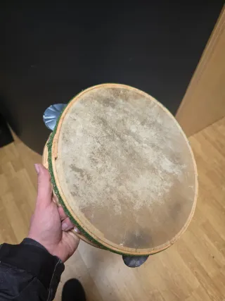 Tamburello artigianale professionale da 30cm. - Diametro: 30 cm - Materiale: Legno e pelle - Finitura: Bordi verdi decorati
