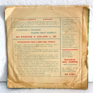 KIT VI PRESENTA CERCATORI D'ORO CANZONI DEL WEST 7" 45 RPM FINE ANNI '50 DISCO ALLEGATO A PICCOLO SCERIFFO SERIE NUOVO SCERIFFO RARISSIMO Il disco 45 giri intitolato "Il Piccolo Sceriffo - Canzoni del West" è un oggetto da collezione molto raro legato alla storica serie a fumetti di genere western creata da Tristano Torelli e Camillo Zuffi. Questi vinili venivano spesso distribuiti negli anni '50 come supplementi alle testate della Casa Editrice Torelli o venduti separatamente per capitalizzare il successo del personaggio. VINILE : VG - COVER : VG ASCOLTATO : IL VINILE E' IN BUONISSIME CONDIZIONI CON QUALCHE RARO FRUSCIO