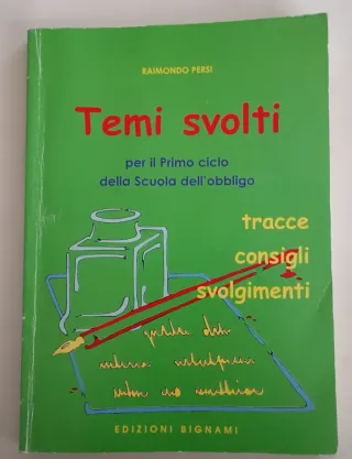 Libro di 253 pagine " Temi svolti" per il primo ciclo della Scuola dell'obbligo, tracce, consigli e svolgimenti. In lingua italiana. Edizione Bignami.
