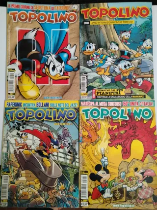 Vendo n. 44 fumetti di Topolino di vari anni (dal 1989 al 2014) tutti i discrete condizioni. Come da foto allegate