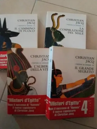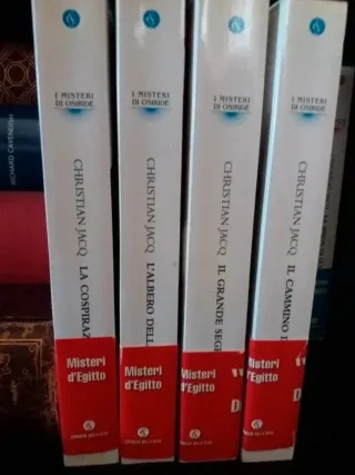 4 libri ( volumi)di Christian Jacq " Misteri d'Egitto". volumi sono in brossura con copertina lucida a colori, integri e completi. I Misteri di Osiride – I, L’Albero della Vita I Misteri di Osiride – II, La Cospirazione del Male I Misteri di Osiride – III, Il Cammino di Fuoco I Misteri di Osiride – IV, Il Grande Segreto.