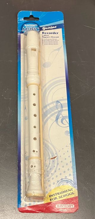 Flauto dolce a 3 pezzi marca Bontempi, modello Genius. - Colore bianco. - Ideale per la scuola La confezione risulta un po’ usurata ma non è mai stata aperta. Misure della confezione 10x42