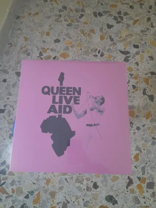 Vinile Lp dei Queen "Live Aid" sigillato. - Copertina rosa con grafica iconica. - Sigillato