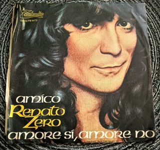 Amico / Amore Sì, Amore No Renato Zero 1980 – Italy Vinile, 7", 45 RPM, Stereo Zerolandia – PB 6473 Ben tenuto - Etichetta Zerolandia. - Catalogo PB 6473. - Lato A: Amico - Lato B: Amore Sì, Amore No