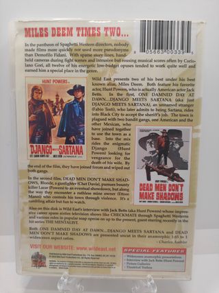 The Spagetti Western Collection volume 28 A Hunt Powers Double Feature (1970) di Miles Deem Dead Men don't make Shadows (Inginocchiati straniero.. I cadaveri non fanno ombra!) con Chet Davis, Ettore Manni. One Damned Day at Dawn.. Django Meets Sartana (Quel maledetto giorno d'inverno.. Django e Sartana all'ultimo sangue) con Fabio Testi, Simone Blondell. Il disco è in condizioni ottime. Edizione Americana Ntsc. Raro. Acquistabile usato su Amazon a 149,99 $ Audio: Inglese Attenzione: Non è presente la lingua Italiana.