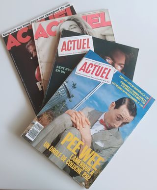 ACTUEL magazine mensuel. 4 numeros. N° 92 (Juin 1987) N° 109-110 (Juillet-Aout 1988) N° 33 (Septembre 1993) N° 35 (Novembre 1993). Troisième-Quatrième série, journalisme gonzo, reportages d’investigation inédite, musique, contre-culture, arts. Le lot de quatre EUR 12