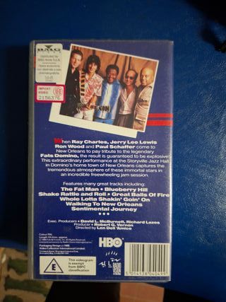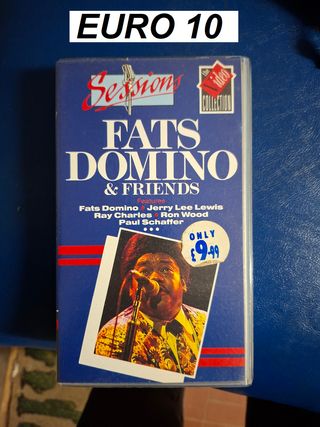 VHS Fats Domino & Friends della serie Sessions e The Video Collection. - Contiene performance di Fats Domino, Jerry Lee Lewis, Ray Charles, Ron Wood e Paul Schaffer. - Prezzo originale indicato di £9.99.