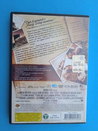 Film DVd I ponti di Madison County Italiano - Inglese - Russo La storia è ambientata in Iowa e narra di una storia d'amore tra una casalinga di origini italiane e un fotografo.
