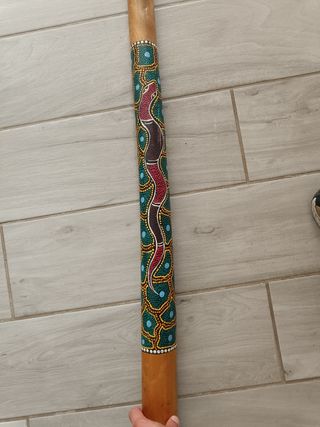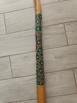 Bellissimo dejeridoo decorato a mano, in ottime condizioni. - Lungo circa 120 cm. - Decorazioni colorate e dettagliate. - Realizzato in legno. - Perfetto per collezionisti o musicisti.