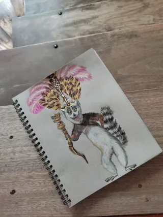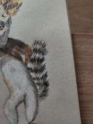 Ritratto del Re Julien del film Madagascar, disegnato a mano con colori a matita. - Personaggio iconico del film. - Dettagli curati nel disegno. - pezzo unico Misura circa 23×30 cm