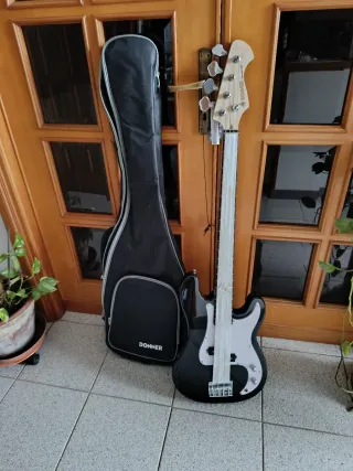 Basso elettrico Donner di colore nero, completo di custodia. - Colore nero lucido. - Custodia imbottita inclusa. - Manico in acero.