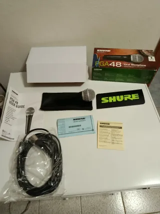 Microfono Shure PGA48 per voce. Ideale per performance vocali. - Design robusto e affidabile. - Griglia metallica protettiva. - Connessione XLR.