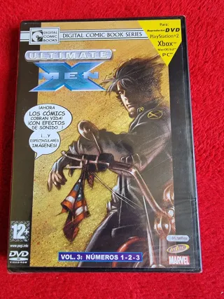 Collezione di fumetti digitali di Ultimate X-Men in formato DVD. Mai aperta. Include i numeri 1, 2 e 3 del Volume 3. Formato DVD Video/ROM. Compatibile con lettori DVD, PlayStation 2, Xbox e PC.