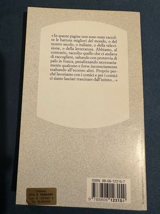 Ironico, brillante e attualissimo: Breviario comico di Michele Serra è un piccolo classico della satira italiana. In ottime condizioni, perfetto per chi ama l’umorismo intelligente e la scrittura pungente. 📖✨ Vendo “Breviario comico” di Michele Serra, uno dei libri più amati della satira italiana contemporanea. Un concentrato di ironia, osservazioni fulminanti e riflessioni leggere ma profonde sulla società, la politica e il quotidiano. 📌 Condizioni: ottime – libro ben conservato, pagine pulite, nessuna sottolineatura 📌 Genere: satira, umorismo, narrativa italiana 📌 Ideale per: lettori di Michele Serra, amanti della comicità