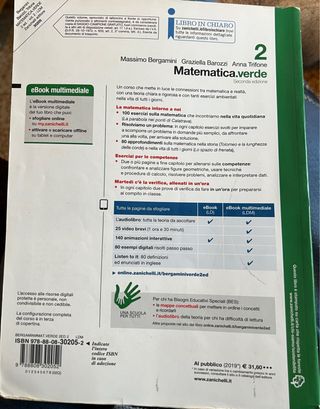 Vendo libro di testo Matematica.verde 2 di Massimo Bergamini, Graziella Barozzi e Anna Trifone, seconda edizione.
