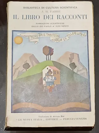Il libro dei racconti è una raccolta di narrazioni scientifiche per ragazzi, scritte dall'entomologo francese Jean-Henri Fabre e tradotte in italiano da Alceste Bisi. Dettagli del libro Autore: J.H. Fabre Titolo: Il libro dei racconti (Narrazioni scientifiche dello zio Paolo a' suoi nipoti) Casa Editrice: La Nuova Italia Editrice (Perugia-Venezia) Anno di edizione (esemplare in foto o simile): 1930 o 1932 (le edizioni variano) Contenuto: L'opera presenta storie che introducono i lettori, in particolare i nipoti dell'autore (presentati come "Zio Paolo" nel testo), alle meraviglie della natura e dell'entomologia (lo studio degli inset
