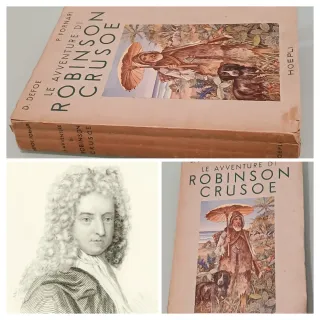 Le avventure di Robinson Crusoe" di Daniel Defoe, nell'edizione curata da P. Fornari e pubblicata da Hoepli, 1949. Titolo: Le avventure di Robinson Crusoe Autore originale: D. Defoe (Daniel Defoe) Curatore/Traduttore: P. Fornari Editore: Hoepli