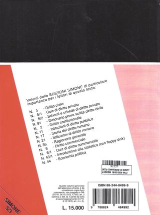 (SC3) COMPENDIO DI DIRITTO CIVILE LIBRO TERZA EDIZIONE ITALIANA SIMONE 1991 USATO ML3 - Libro usato in buono stato edizione italiana Simone 1991 di c/a 384 pagine - copertina flessibile e pagine integre senza scritte ma con segni di usura/pieghe VEDI FOTO