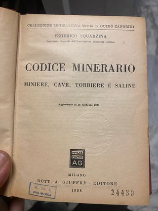 COLLEZIONE LECISLATIVA diretta da GUIDO ZANOBINI FEDERICO SQUARZINA Segretario Generale dell'Associazione Mineraria Italiana CODICE MINERARIO MINIERE, CAVE, TORBIERE E SALINE Aggiornato al 28 febbraio 1958