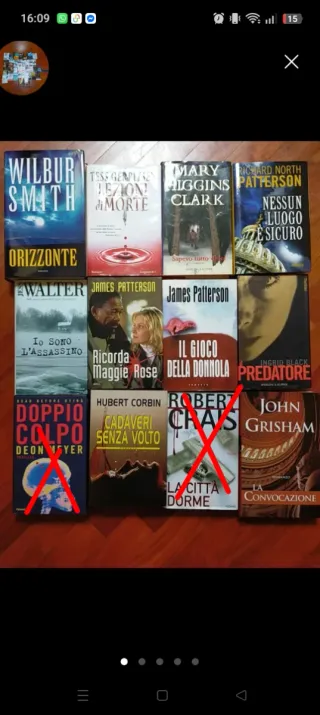 Dalla mia collezione 37 libri di vari autori e case editrici cosi suddivise: 7 Sue Gratton 3 julie Parsons 2 john Lescroart 4 Douglas Preston & Lincoln Child 4 Richard North Patterson 17 Maru Higgins Clark