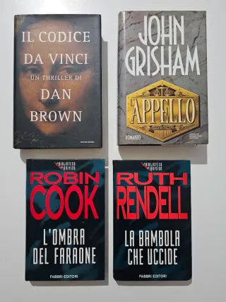 4 romanzi thriller tra i PIÙ VENDUTI e amati dal grande pubblico. Libri come nuovi: - "Il codice da Vinci" - "L'appello" - "L'ombra del Faraone" - "La bambola che uccide". Vendita da privato, no garanzia. legal thriller gialli