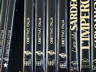Collezione di libri della serie "Obiettivo Città" e "Obiettivo Italia", editi da Jaca Book, che coprono argomenti di storia, arte e geografia italiana. Editori: Jaca Book. Serie: "Obiettivo Città" e "Obiettivo Italia". Argomenti: Storia (es. L'Impero Romano, Gli Arabi in Europa), arte (es. L'arte della Sardegna Romana) e città italiane (es. Roma, Venezia, Genova). Contenuto: I libri sembrano essere guide o saggi illustrati che esplorano vari aspetti del patrimonio culturale e storico italiano.
