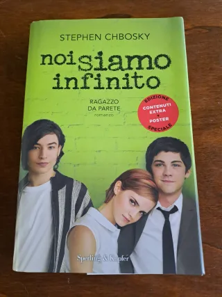 Libro Noi siamo infinito present alcune frasi evidenziate e ha segni di utilizzo soprattutto sugli angoli della copertina come si vede dalle foto.