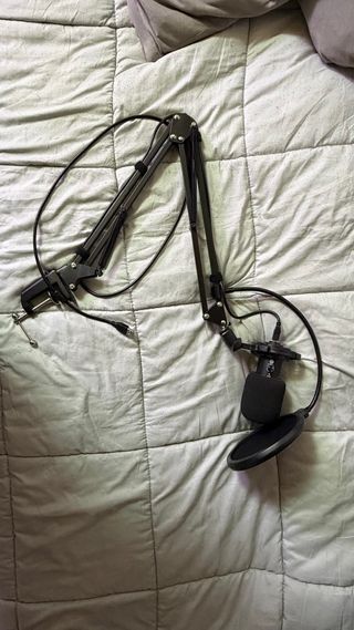 Microfono da studio Aveek con connessione USB, completo di braccio snodabile e filtro anti-pop. - Braccio regolabile per posizionamento ottimale. - Filtro anti-pop per migliorare la qualità audio. - Connessione USB universale.