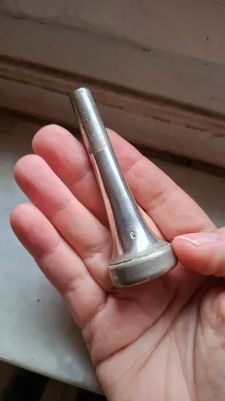 Bocchino in metallo per strumenti a fiato. - Marchiato con la lettera 3. - Finitura in argento.