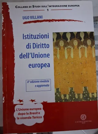 Istituzioni di Diritto dell'Unione Europea, aggiornato dopo la Brexit e la Vicenda Taricco. 6° edizione aggiornata. Ugo Villani, Cacucci editore Sottolineate solo le prime 40/552 pagine