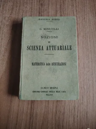 Libro di testo su Nozioni di Scienza Attuariale. Autore: G. Minutilli. Editore: Ulrico Hoepli. Collezione: Manuali Hoepli. Sottotitolo: Matematica delle Assicurazioni.