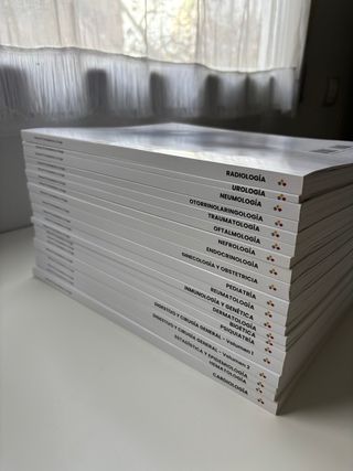 Vengono venduti undici manuali CTO: otorinolaringoiatria, nefrologia, radiologia, bioetica, pediatria, oftalmologia, psichiatria, malattie infettive, ematologia, urologia, emergenze e geriatria. Tutti in perfette condizioni e non evidenziati tranne la psichiatria, che è rugosa e c'è un argomento sottolineato. Ogni manuale 6€.
