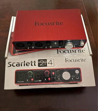 Focusrite Scarlett 2i4 1st gen scheda Audio In ottime condizioni perfettamente funzionante! Presente la scatola e dò il cavo originale! Unica 2i4 a questo prezzo! Spedisco! (Nella 5 foto è censurato il numero seriale,NON È MACCHIATO)