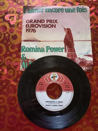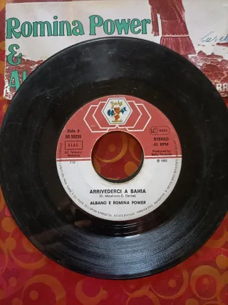 Disco in vinile 45 giri con il brano Arrivederci a Bahia di Albano e Romina Power. - Lato A: Arrivederci a Bahia - Lato B: T'aimer encore une fois - Etichetta: Baby Records - Anno: 1982