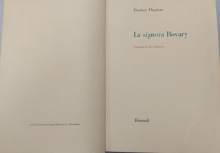 La "Signora Bovary" è una delle opere più celebri di Gustave Flaubert, pubblicata originariamente nel 1857. La versione Einaudi del 1958, solitamente in formato tascabile, si concentra sulla storia di Emma Bovary, una donna di provincia che, stanca della noia e della mediocrità della sua vita, cerca di evadere nella fantasia e in relazioni extraconiugali, finendo per consumarsi nei debiti e nella disperazione. ▪︎ presente ingiallimento delle pagine