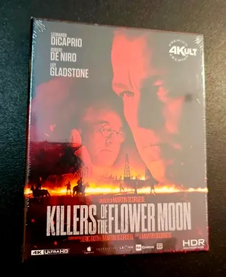 Film Killers of the Flower Moon in Blu-ray 4K UHD Edizione limitata 1000 copie 4kult premium edition con sovracopertina in cartoncino spesso e poster ( visibile nell ultima foto ) - Include il film in formato Blu-ray 4K + il blu-ray standard - Edizione speciale 4KULT ⁃ Con Leonardo DiCaprio, Robert De Niro e Lily Gladstone ⁃ Regia di Martin Scorsese.