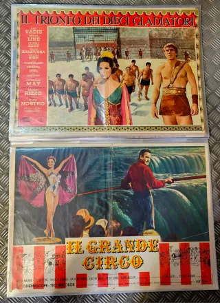Lotto composto da 27 poster originali di grandi film del passato. Questi poster sono pezzi da collezione per gli appassionati di cinema ormai introvabili. Dimensioni Poster circa 70cm x 50cm Ottime condizioni generali con alcuni che presentano dei segni per la piega del poster o alcune parti leggermente consumate. Tutto visibile in foto e non rovinano la resa del poster. Ben hur , Un dollaro di onore , Taras il magnifico , il grande paese , sette spose per sette fratelli , il ladro di Bagdad , i magnifici sette , I dieci comandamenti Il figliuol prodigo Signori si nasce Il trionfo dei dieci gladiatori Il grande circo