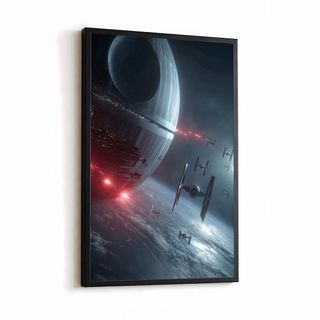 Poster incorniciato a tema Star Wars con la Morte Nera. - Cornice nera. - Immagine della Morte Nera con caccia TIE. Quadro decorativo tema Star Wars A4, con iconica scena spaziale e Death Star, perfetto per gli amanti della saga e dello stile sci-fi. Il poster è inserito in una cornice nera minimal, elegante e moderna, che valorizza i colori scuri e i dettagli dell’immagine. Ideale per arredare camera da letto, studio, salotto o angolo gaming. Stampato su carta di qualità con resa visiva intensa e contrastata. Look cinematografico, pulito e super d’impatto. Caratteristiche: • Tema: Star Wars / Sci-Fi • Formato: A4 (21 × 29,7