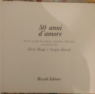 Vendo cofanetto "50 anni d'amore" composto da un disco a 33 giri di un'ora che racconta mezzo secolo di ricordi raccontati da Enzo Biagi e Sergio Zavoli e arricchito da 100 pagine con fotografie. Rizzoli Editore, anno 1961. Dimensioni 32 x 32 cm