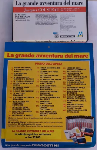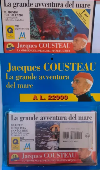 Questa è una raccolta di videocassette della serie La grande avventura del mare con Jacques Cousteau. - Include 40 splendidi filmati in videocassetta VHS, originali, durata un'ora ciascuno corredati da 40 mini guide di 20 pagine con tavole illustrate dedicate al tema trattato