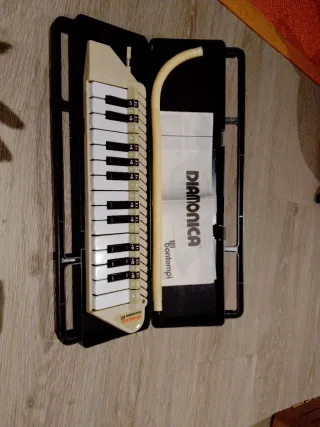 Melodica Bontempi Diamonica in custodia. - Strumento a fiato con tastiera. - Custodia nera inclusa. - Tubo flessibile giallo.