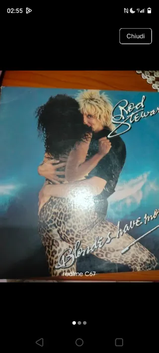 Vinile LP di Rod Stewart, Blondes Have More Fun. - Copertina con immagine di Rod Stewart e una donna. - Testo Blondes have more fun stampato sulla copertina.