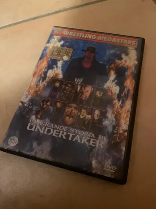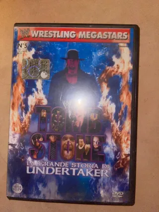 DVD La grande storia di Undertaker della WWE. - Copertina con immagini di Undertaker e altri wrestler. - Titolo in italiano.