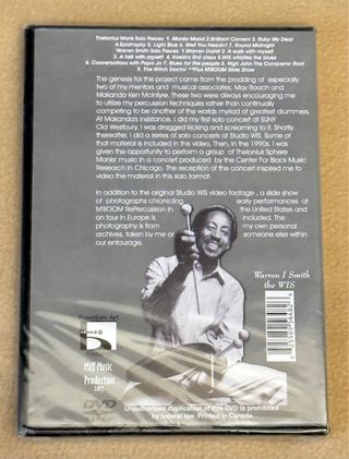 Vendo DVD di Warren Smith, "WIS on Monk - Warren Smith Solo Percussion". Il DVD è nuovo, ancora sigillato nella sua confezione originale. - Include performance di percussioni soliste. - Presenta registrazioni video di concerti. - Contiene immagini fotografiche e materiale inedito.