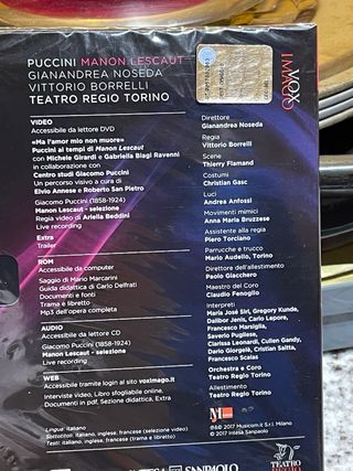 Set di 3 cofanetti CD + DVD di opere liriche. - Puccini: Manon Lescaut con Gianandrea Noseda, Vittorio Borrelli, Teatro Regio Torino. - Leoncavallo: Pagliacci con Daniel Harding, Mario Martone, Teatro alla Scala. - Beethoven: Fidelio con Daniel Barenboim, Deborah Warner, Teatro alla Scala.